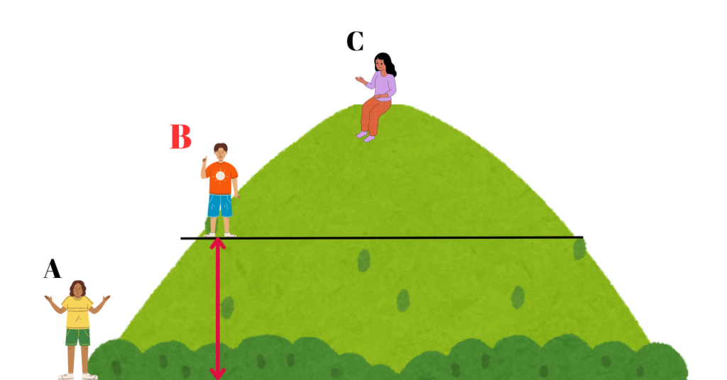 自分がBの5合目にいるとして、頂上にいる人=Cを見上げたら遥か彼方で自信をなくすけど、まだ登山道のスタートラインにいる人=Aに対してはたくさんアドバイスができますよね。