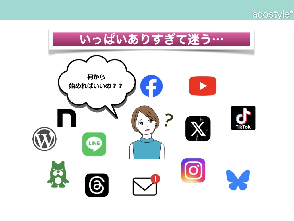 インスタ集客とか、TikTok集客とか、固有のツールを使ったノウハウは巷に溢れているし、最近だとBlueskyだのThreadsだの…新しいツールもどんどん増えていく一方で、ビジネスにはSNS運用が不可欠です!なんて言われたら途方に暮れますよね。