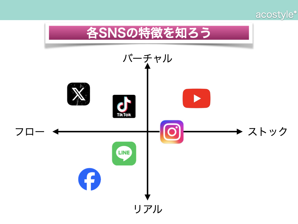 【マトリックス】フロー↔︎ストック/バーチャル↔︎リアルから見たSNSの棲み分け